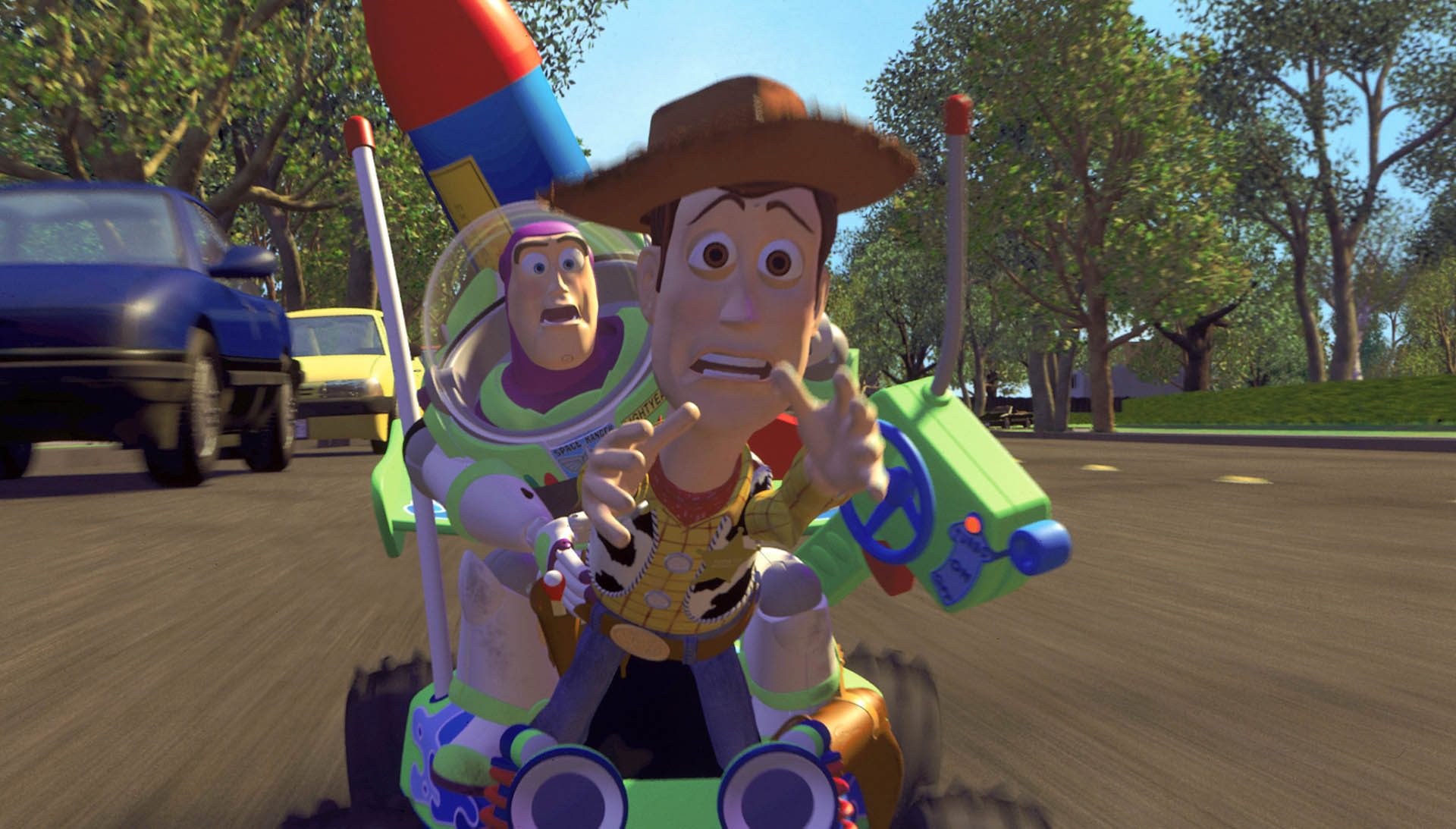Woody (Tom Hanks), a good-hearted cowboy doll who belongs to a young boy named Andy (John Morris), sees his position as Andy's favorite toy jeopardized when his parents buy him a Buzz Lightyear (Tim Allen) action figure. Even worse, the arrogant Buzz thinks he's a real spaceman on a mission to return to his home planet. When Andy's family moves to a new house, Woody and Buzz must escape the clutches of maladjusted neighbor Sid Phillips (Erik von Detten) and reunite with their boy.